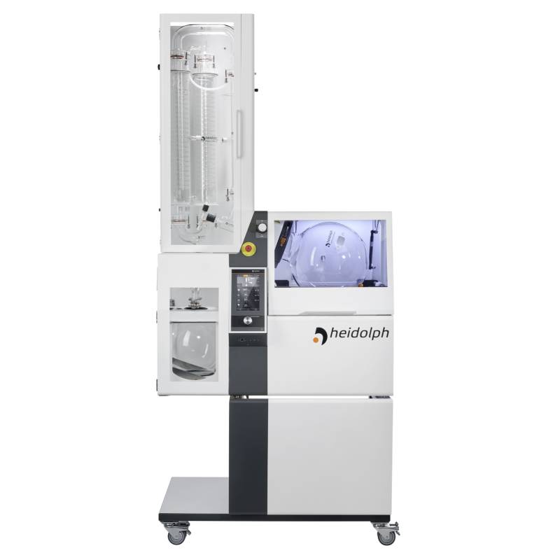 蒸發(fā)瓶和接收瓶受透明、防霧 PMMA 防護(hù)罩保護(hù),有效提高安全性。水/油兩用加熱鍋可用水或浴液,最高加熱溫度可達(dá) 180 °C。集成自動(dòng)補(bǔ)液系統(tǒng)、溢流口及底部放液閥。EASY LOCK可實(shí)現(xiàn)單人更換蒸發(fā)瓶。